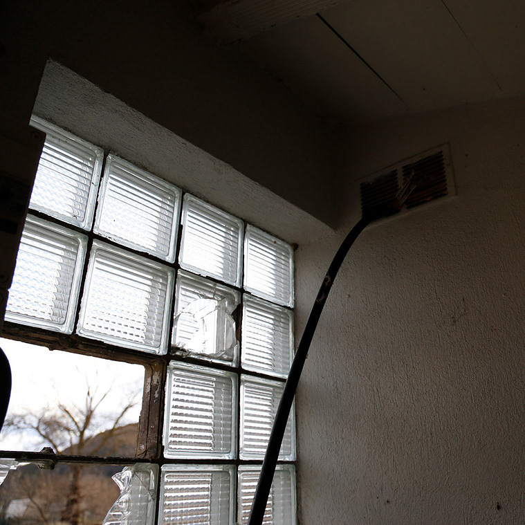 Dehors le terrain devenu vague les carreaux cassés les morceaux de fer en déséquilibre l’herbe folle